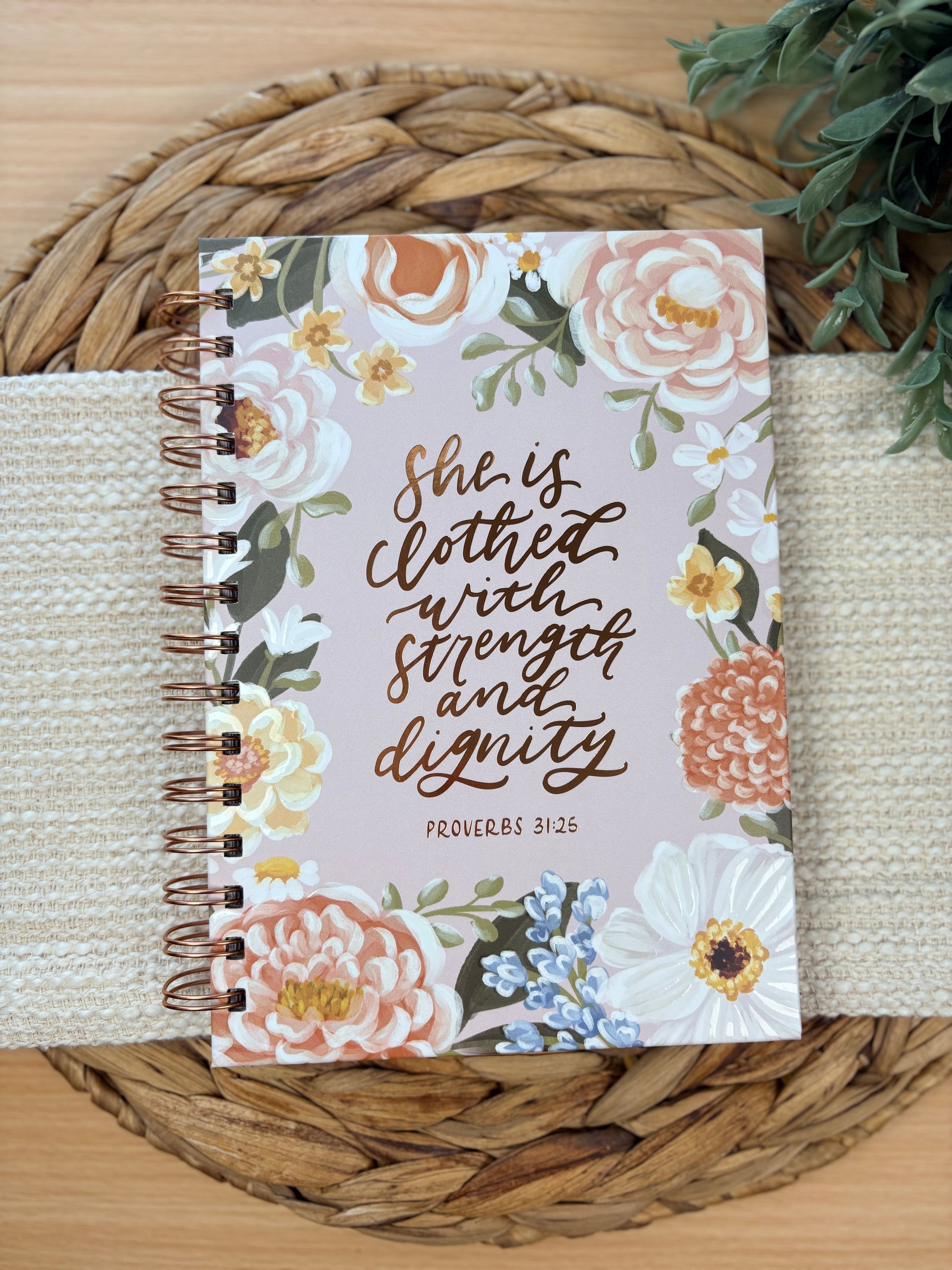 Journal Wire bound Pink Floral Strength & Dignity Prov. 31:25